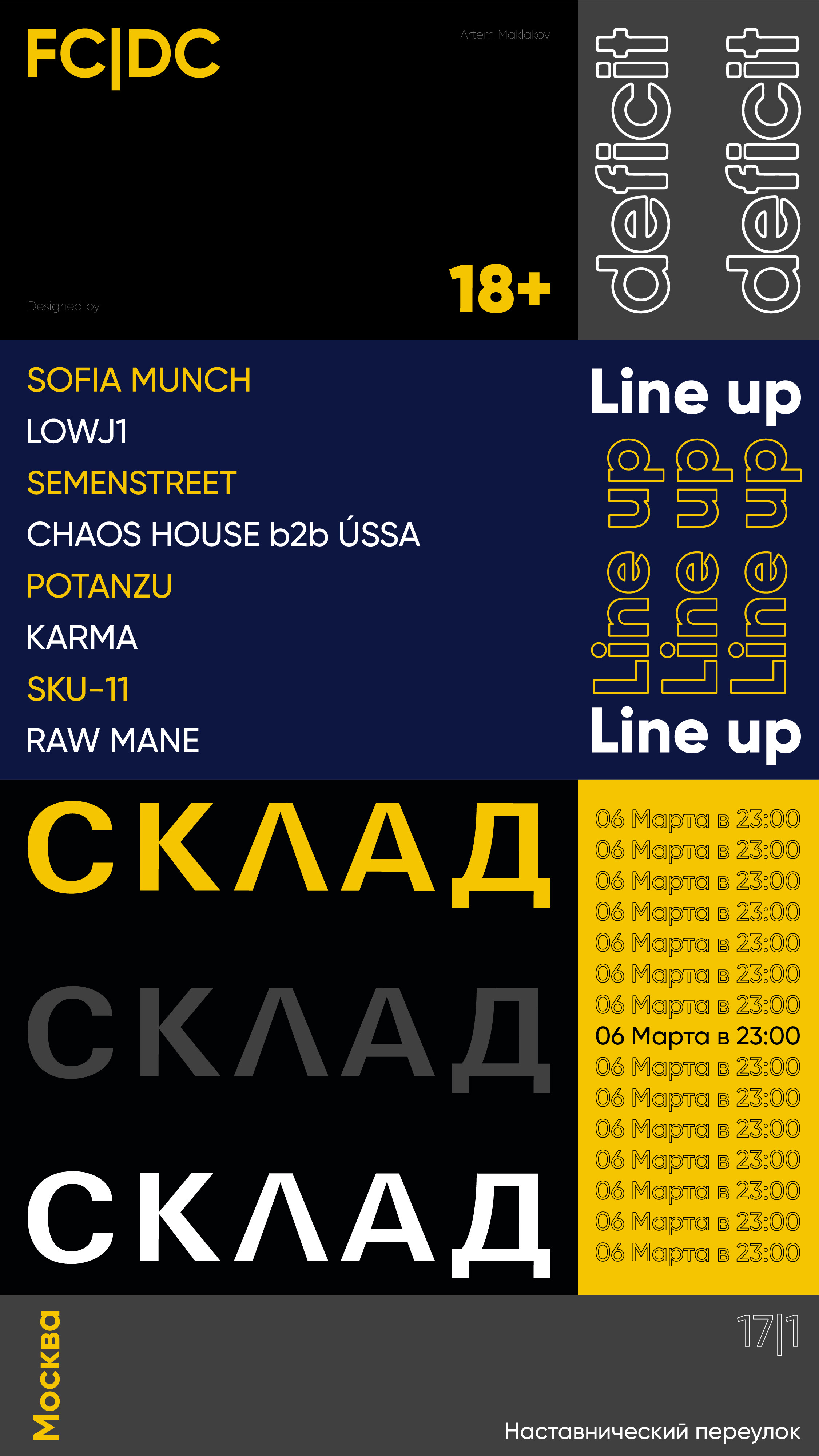 Шестого марта СКЛАД возвращается в дефицит, чтобы в лучших традициях провести вечер пятницы и подарить вам кучу незабываемых эмоций и ощущений! Начинаем с диско и тёплого хауса плавно переходя к темной стороне техно и электро звучания. Танцуем всю ночь и до 7 утра!